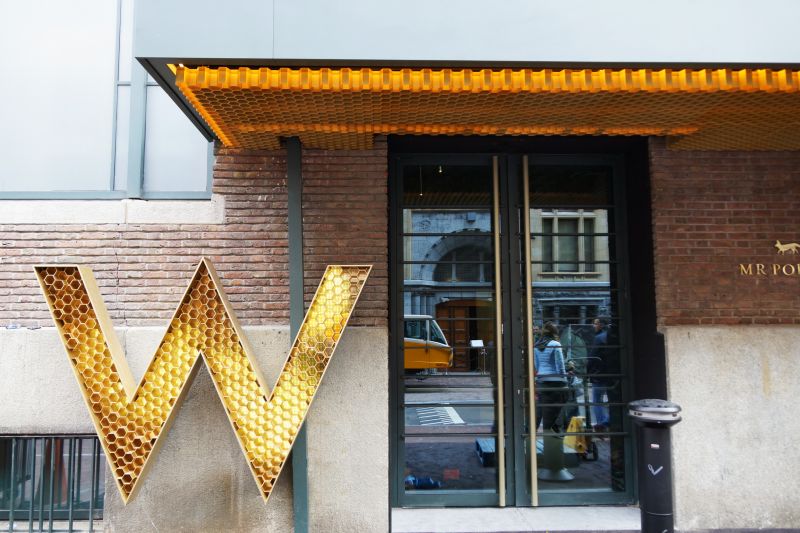 Hotel W Amsterdam położony jest w samym sercu stolicy Holandii, tuż za pałacem królewskim. Mieści się w dwóch zabytkowych budynkach – w starym holenderskim budynku poczty królewskiej w pobliżu placu Dam oraz sąsiednim dawnym budynku banku przy Spuistraat 172.