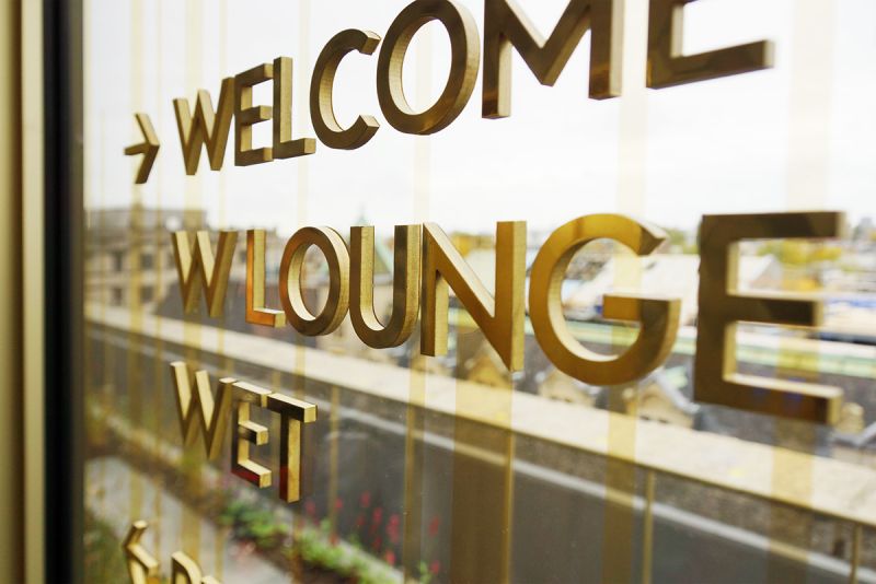Całość projektu zwieńczyliśmy kompleksowym oznakowaniem wewnętrznym i zewnętrznym budynków. Najciekawszym elementem jest logo, czyli litera W przy wejściu do hotelu.